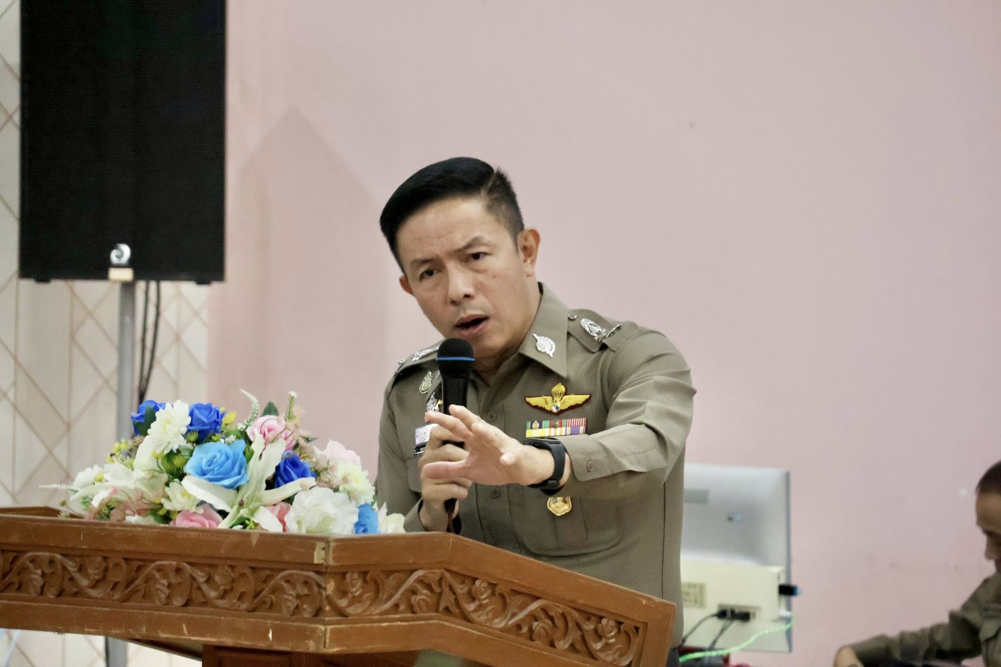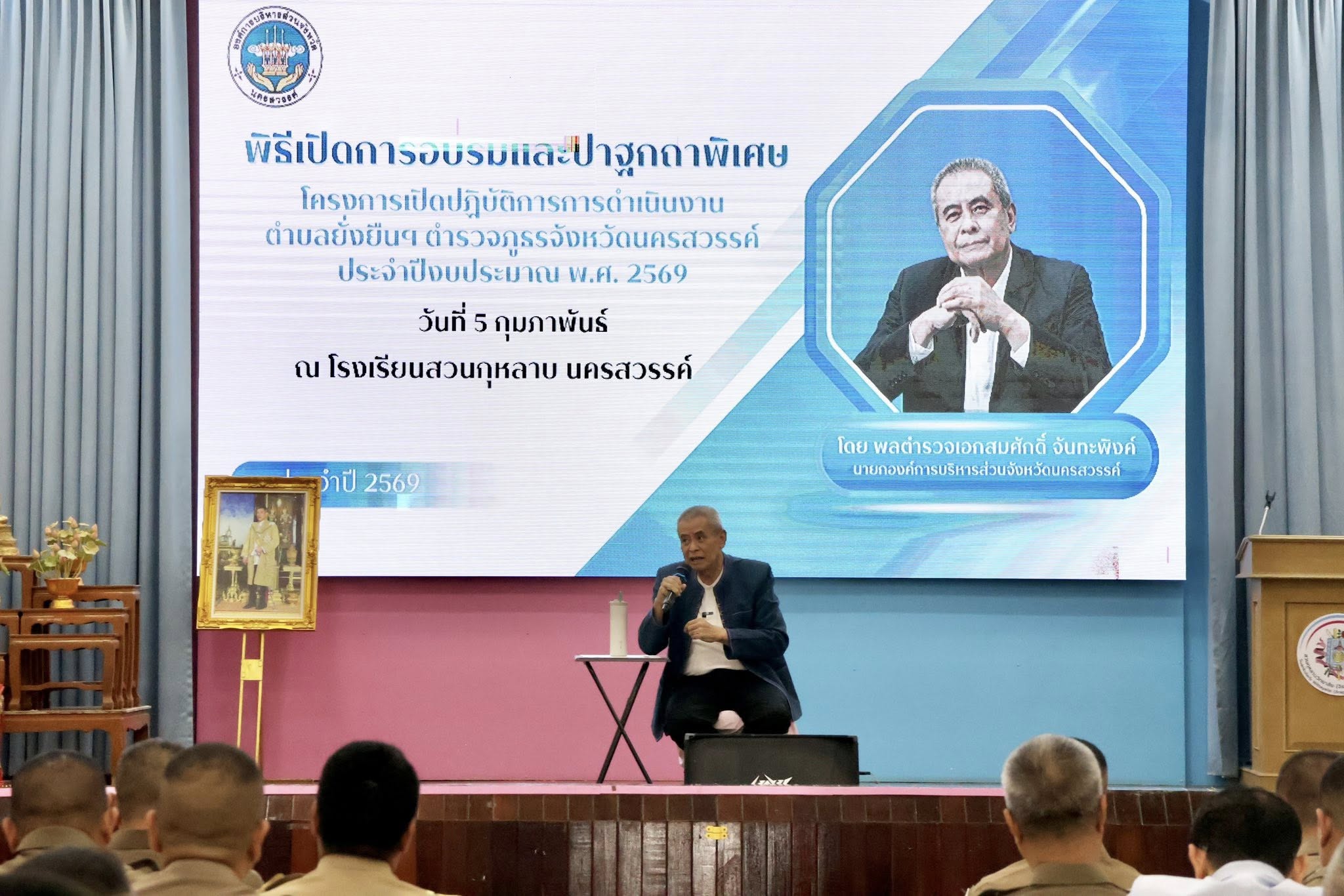 พล.ต.ต.นเรวิช สุคนธวิท ผบก.ภ.จว.นครสวรรค์ เปิดพิธีอบรมให้ความรู้เกี่ยวกับการเลือกตั้งสมาชิกสภาผู้แทนราษฎรและการออกเสียงประชามติ