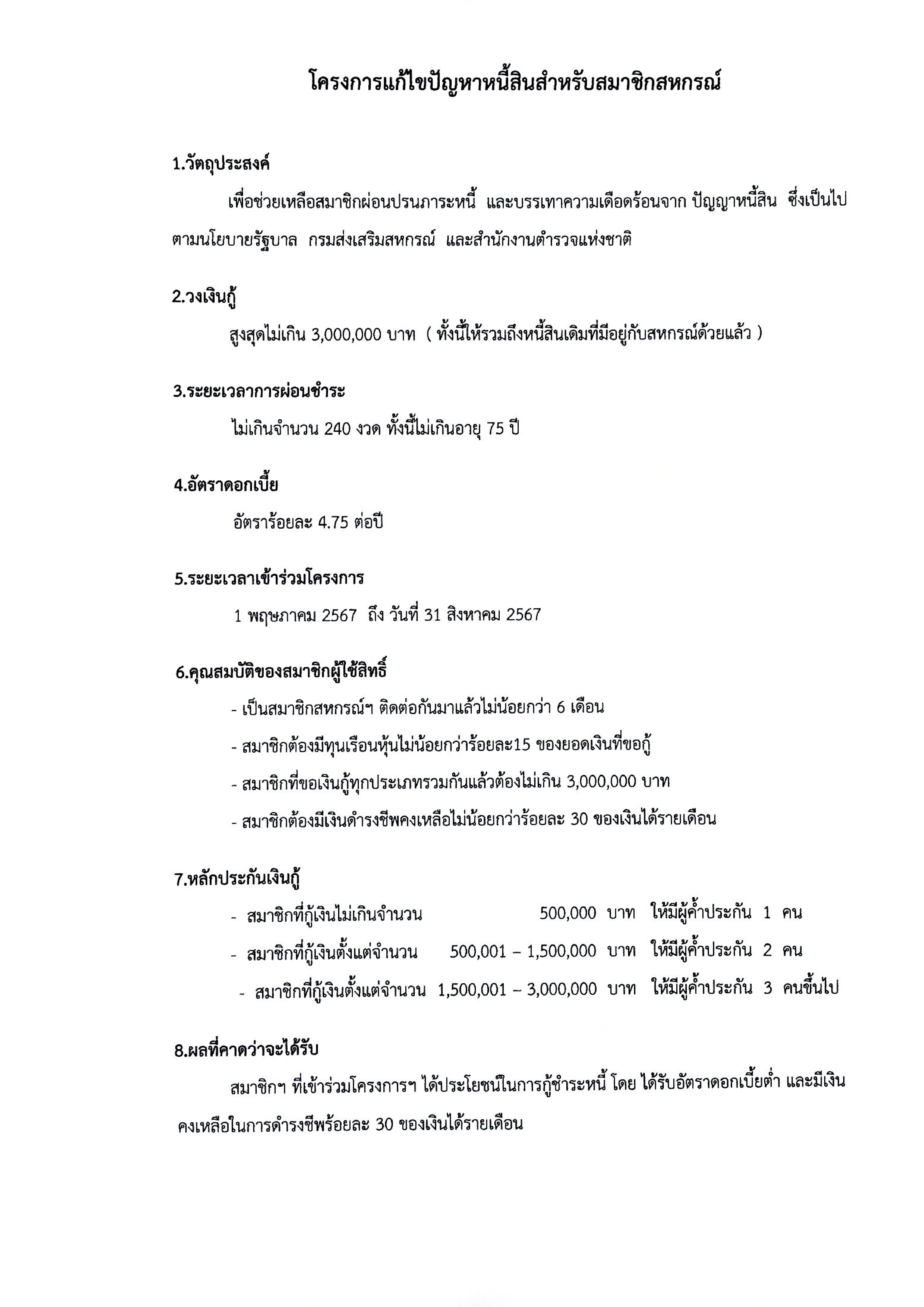 โครงการแก้ปัญหาหนี้สินสำหรับสมาชิกสหกรณ์ 1 พฤษภาคม 2567 โดย Wanchana Kaeokotchasan / สหกรณ์ออมทรัพย์ตำรวจภูธรจังหวัดนครสวรรค์